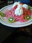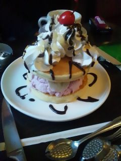 パンケーキの間のイチゴアイスが春の色なのかも。。バランスよく食さないと雪崩が起きます~