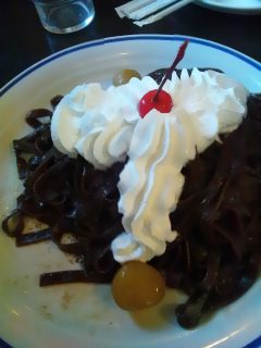 残ってるのは栗とチョコきしめん。。いかん、遭難デビューするわと思ったあたしは「すみませーん。ホットコーヒー追加で」周りのテーブルでは遭難してるのもいましたがw(ここでイカスミジュース頼むと泣けそうになります。コレも甘かったです@体験談)完食~