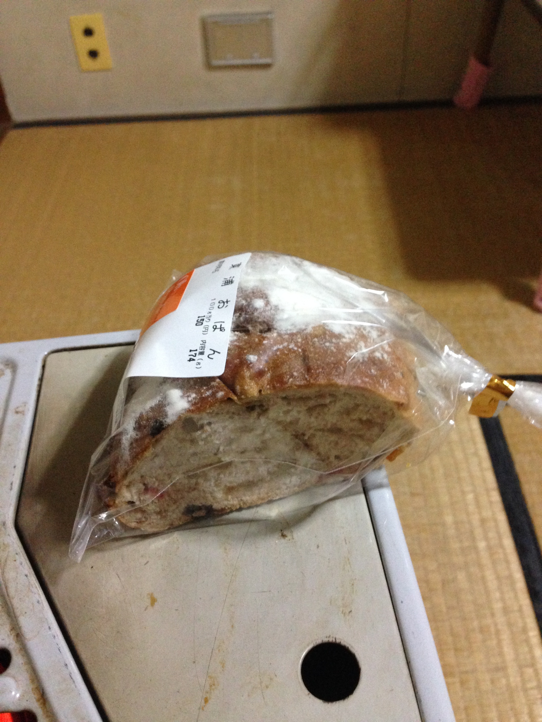 でかけて、こんなのを買ってみた^^;ドライフルーツたっぷりのパンで美味しかったです。(母の視線がちょっと痛い。。)