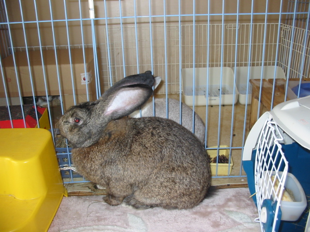 こちらの写真では背景となってしまってますが。。背中だけ「ちらっ」のうさぎさんはくぅさん(2002.9生まれの♂で2kg位)です。