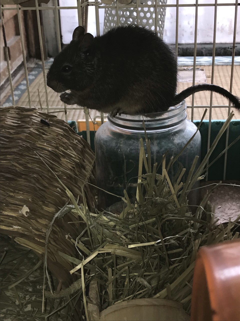 デグーのはるも6歳過ぎました。年末年始はこちらでは冷え込みが強く保温に気をつけてましたがデグーの6歳ってヒト年齢換算だと。。高齢になるようです。