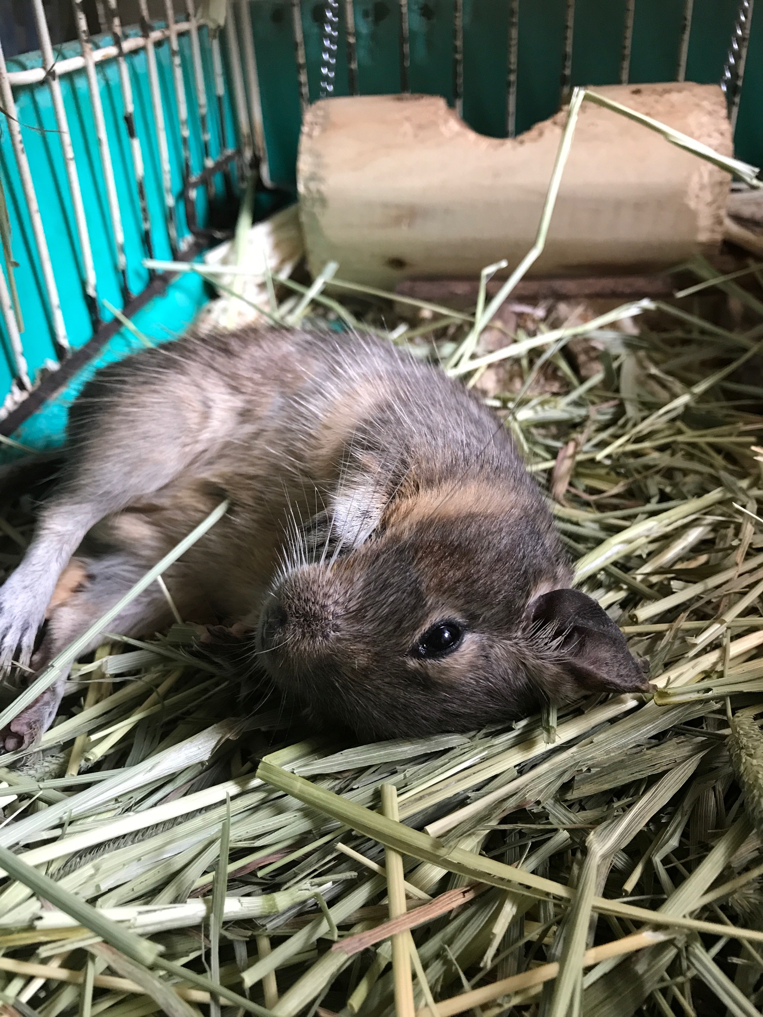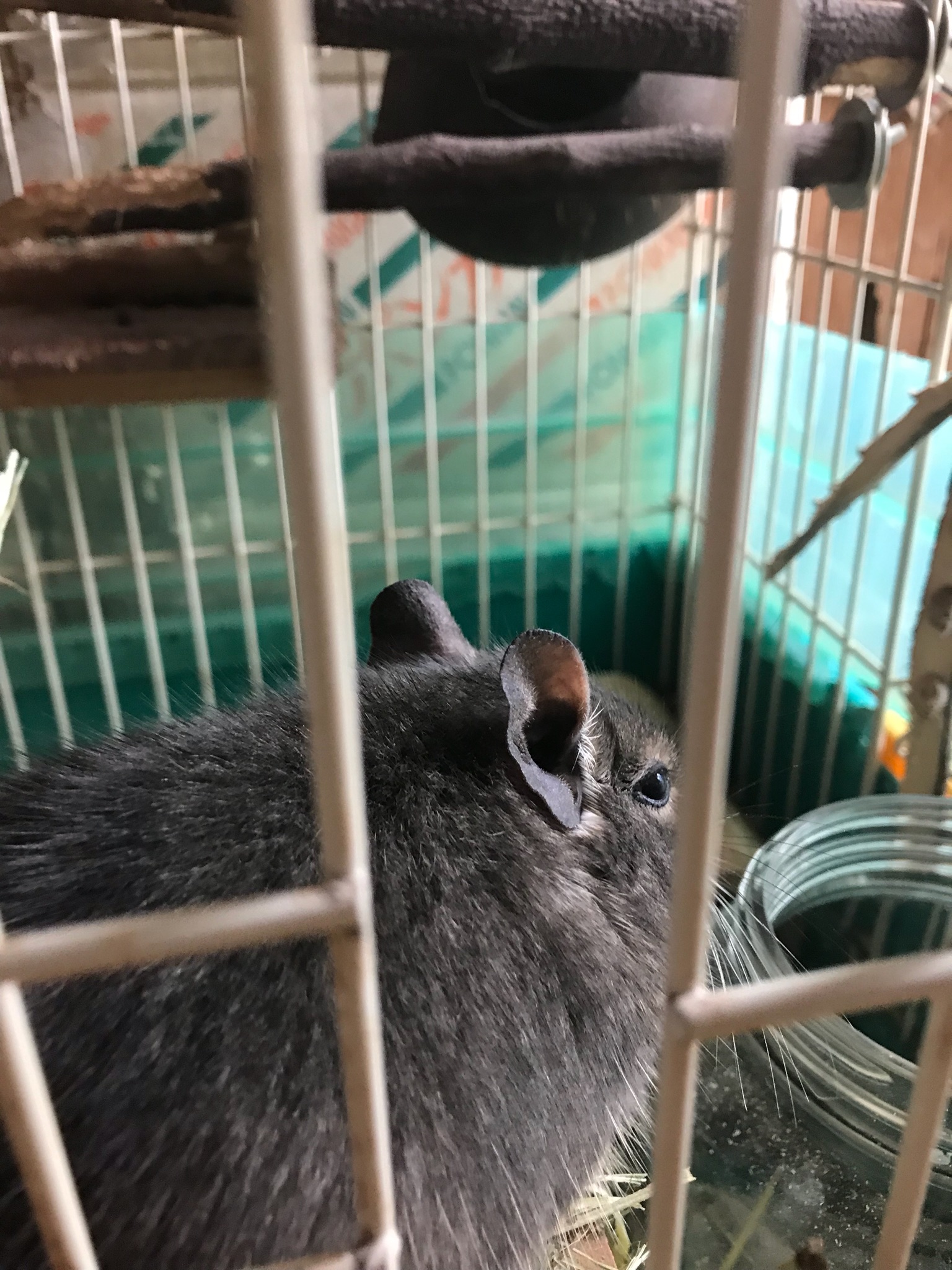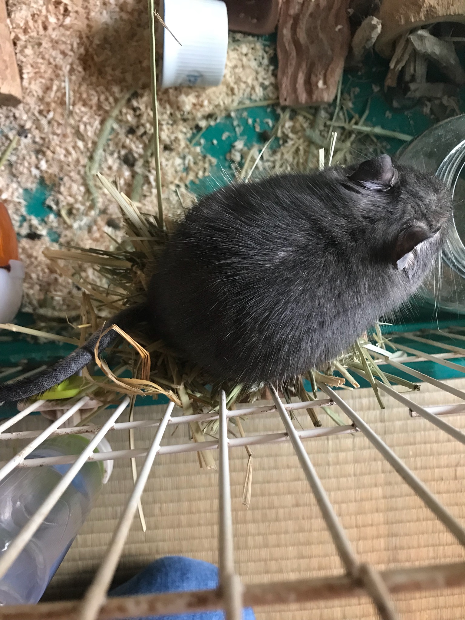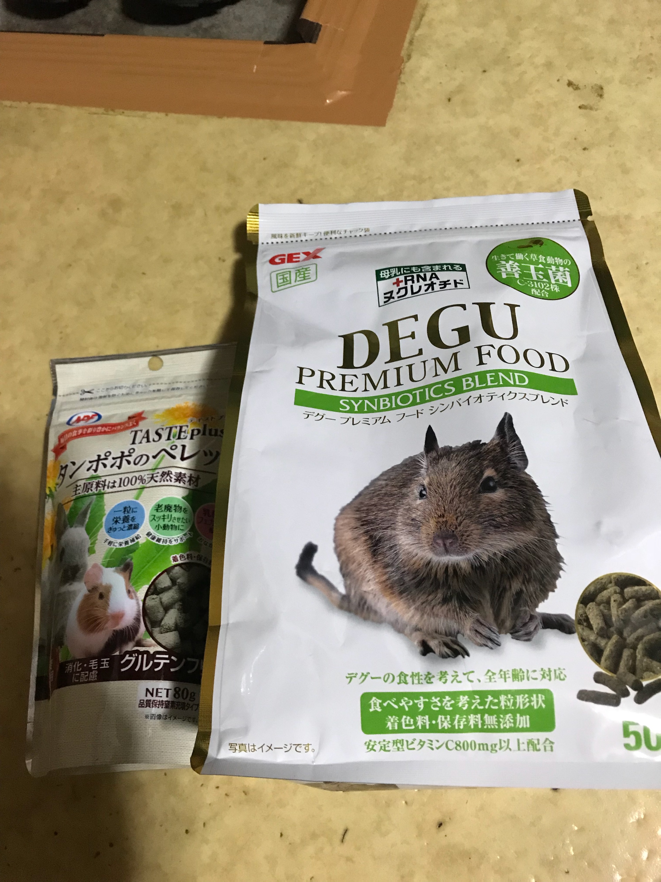 飼い主がまた救急搬送になると(救急搬送前科ありますし)フードの手配まずいじゃん~となるので(多頭飼いならネット通販使えるかもしれないけど単独飼いなので割高ですし)モルモットフードも食べれるデグーに教育することにしました。