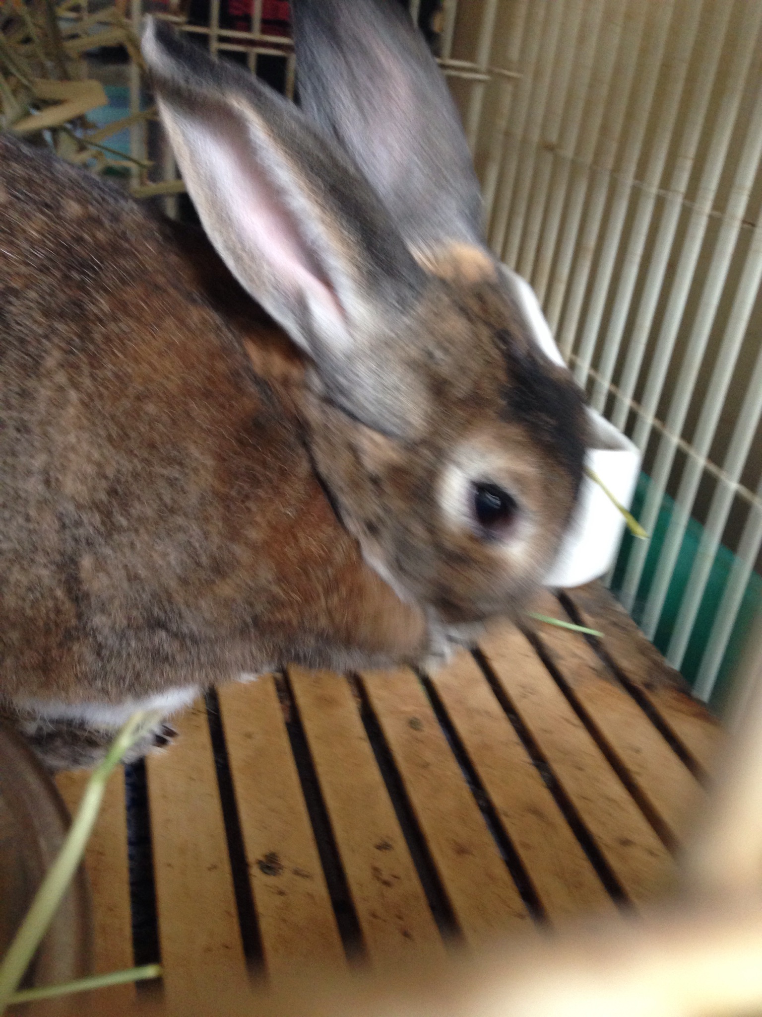チモシー牧草をしぶしぶ食べてるはるを上から~