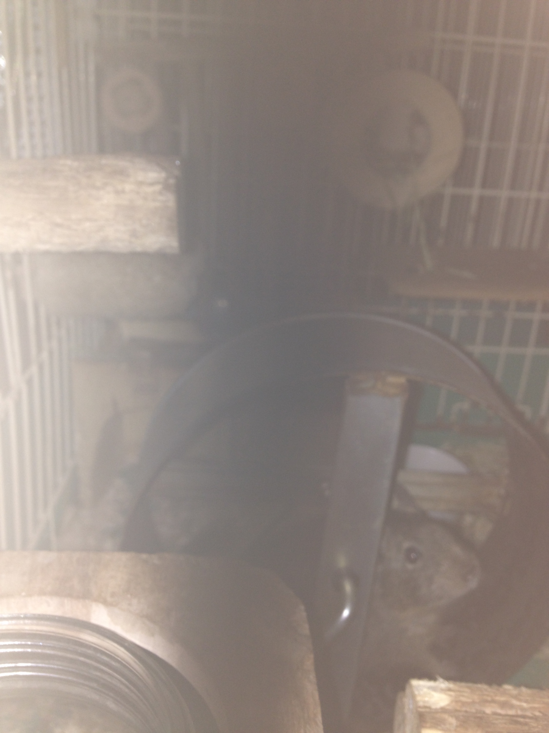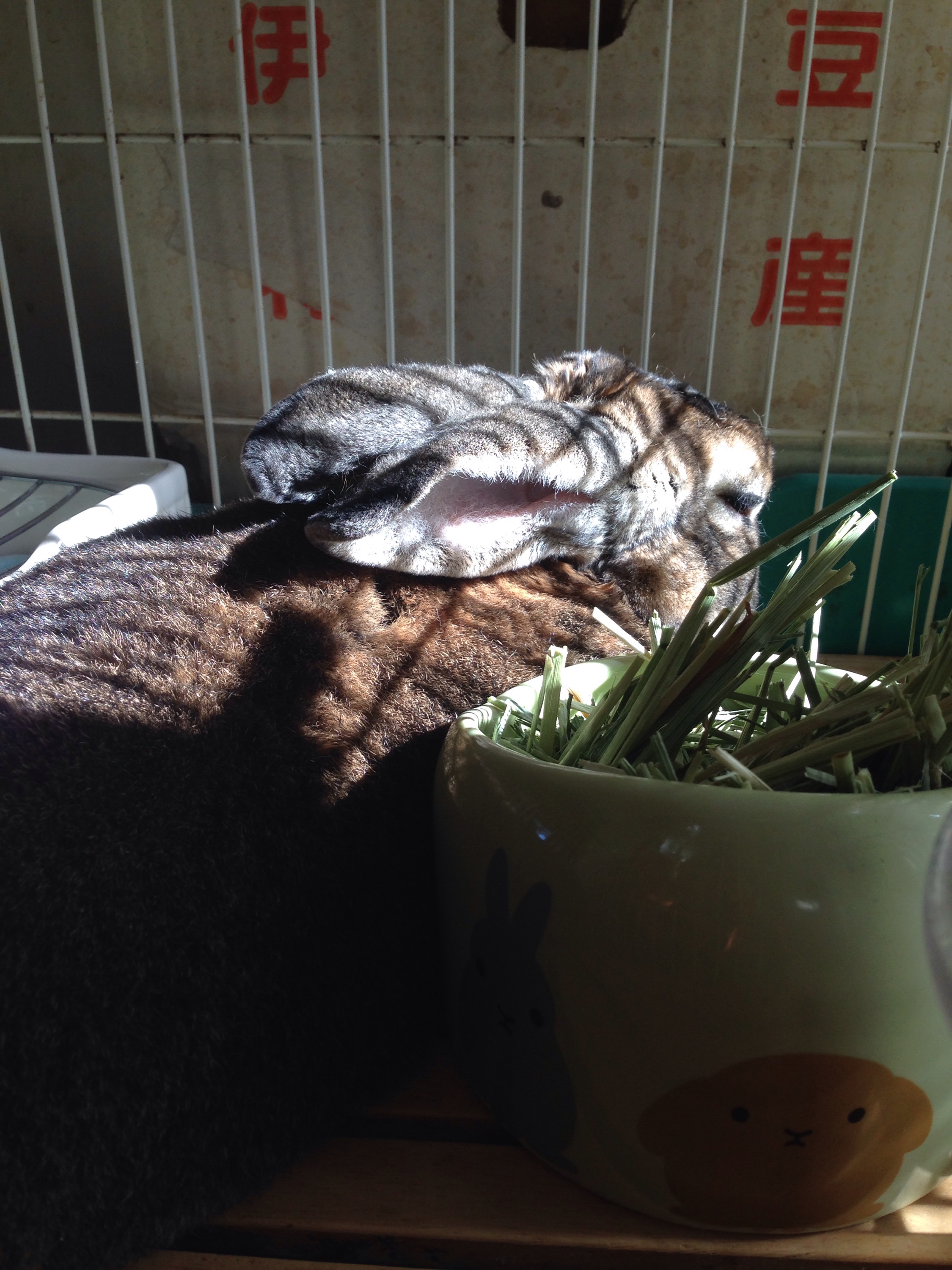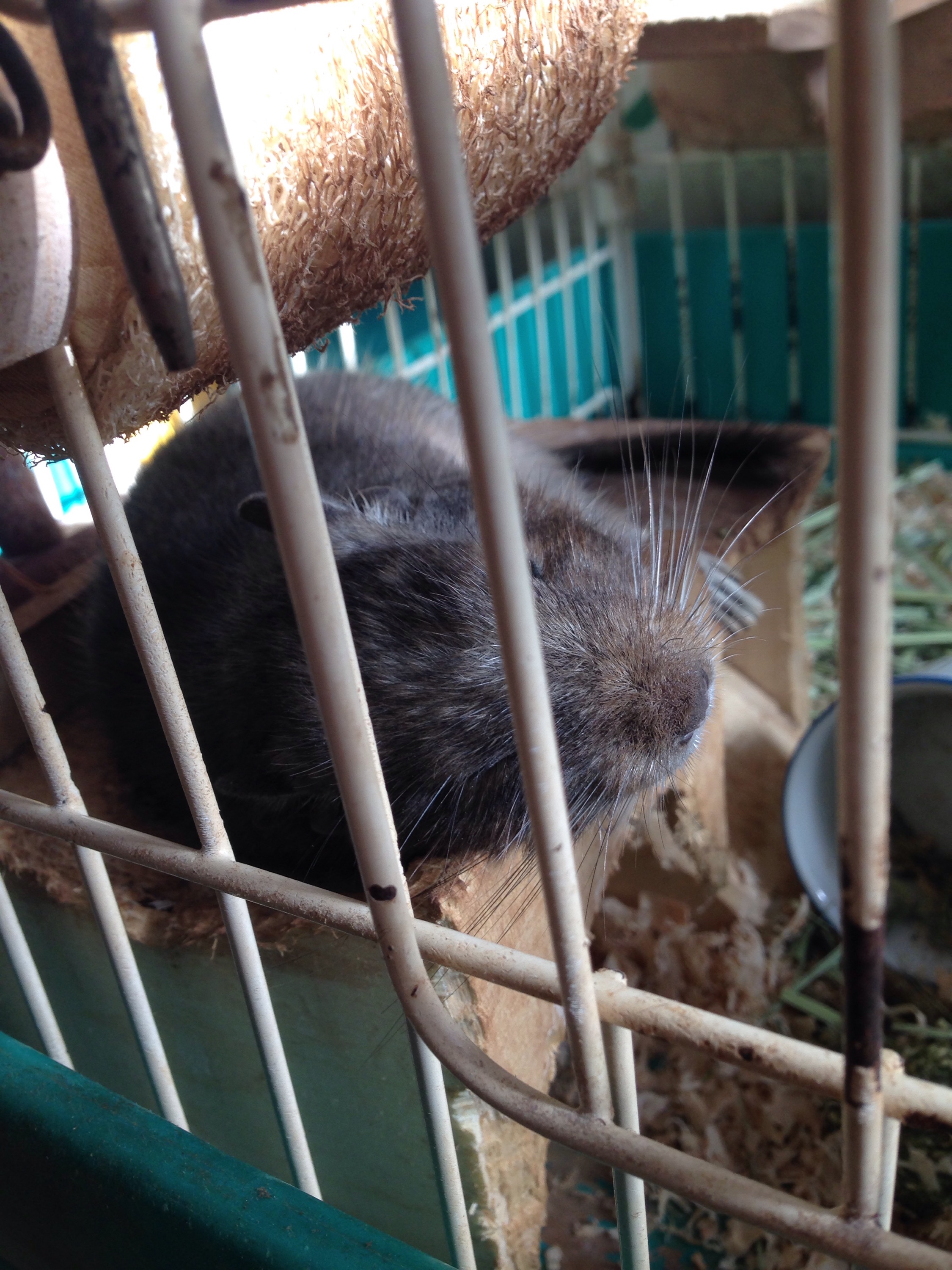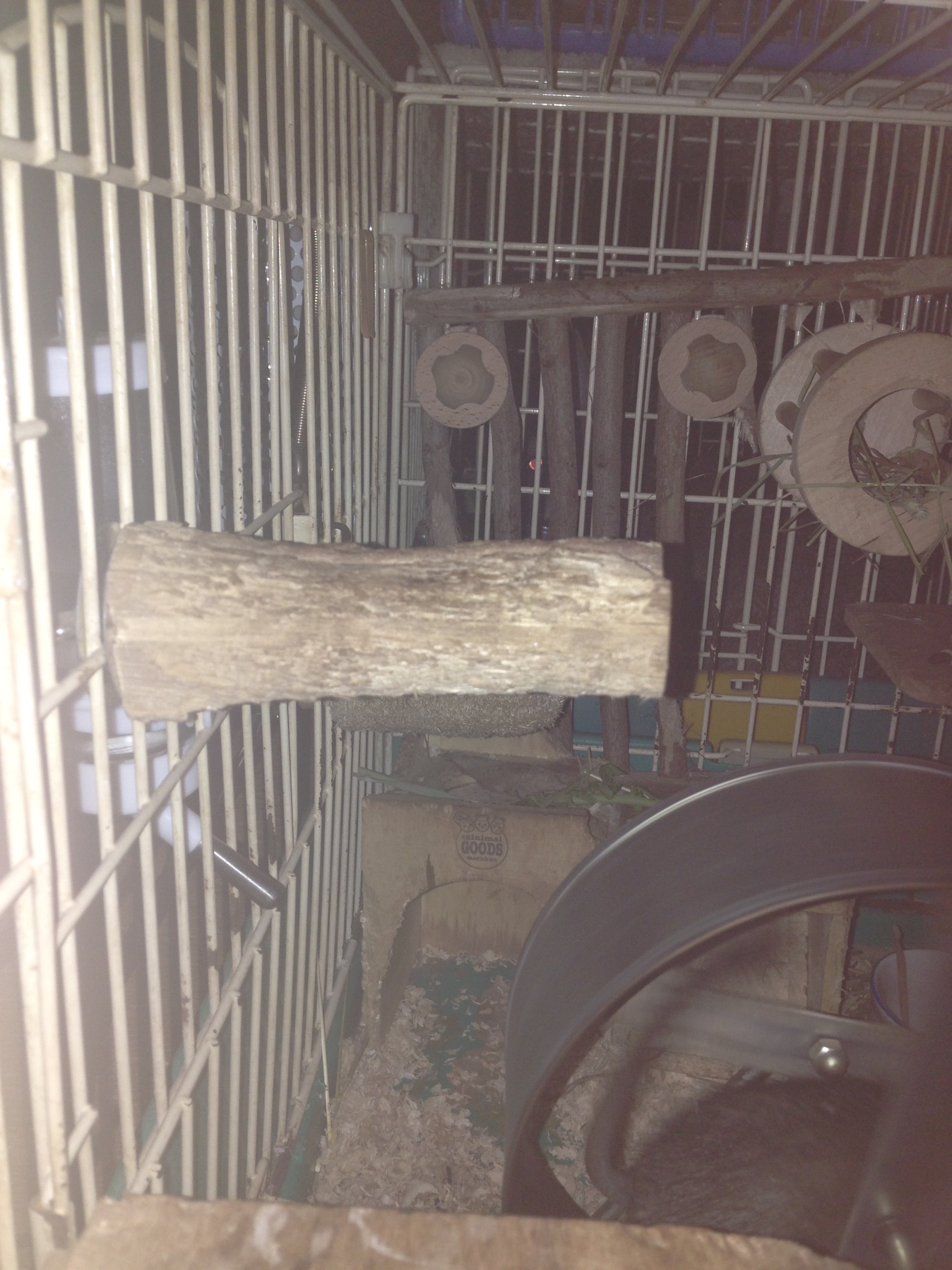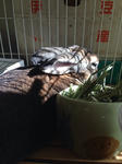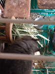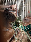 こちらは横から撮影。チモシー牧草ボリボリ食べます。ガジガジフェンス崩壊させるだけの威力ありますねぇ。(巣箱崩壊でココハウス復活。コレと足場になっているヘチマはあまりかじらない)