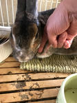OXBOW牧草は早食いする方は前足上のタプタプが小さくなりました。(そのうちわずかなスキをついて獣医師に挑むじぃさんうさぎにならないことを願う)